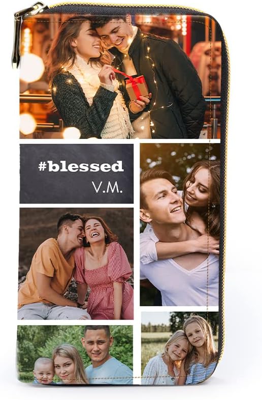 This personalized zip wallet turns your favorite moments into something you can carry every day. With room for four custom photos and a short message or initials, it’s designed to keep memories close while staying practical. The soft PU leather feels great in hand, while the zip-around closure keeps everything secure inside. Whether you’re treating yourself or surprising mom, your wife, or a dear friend, this photo wallet is a sweet, personal way to say “you matter.” Simple, meaningful, and ready to be made just for you.